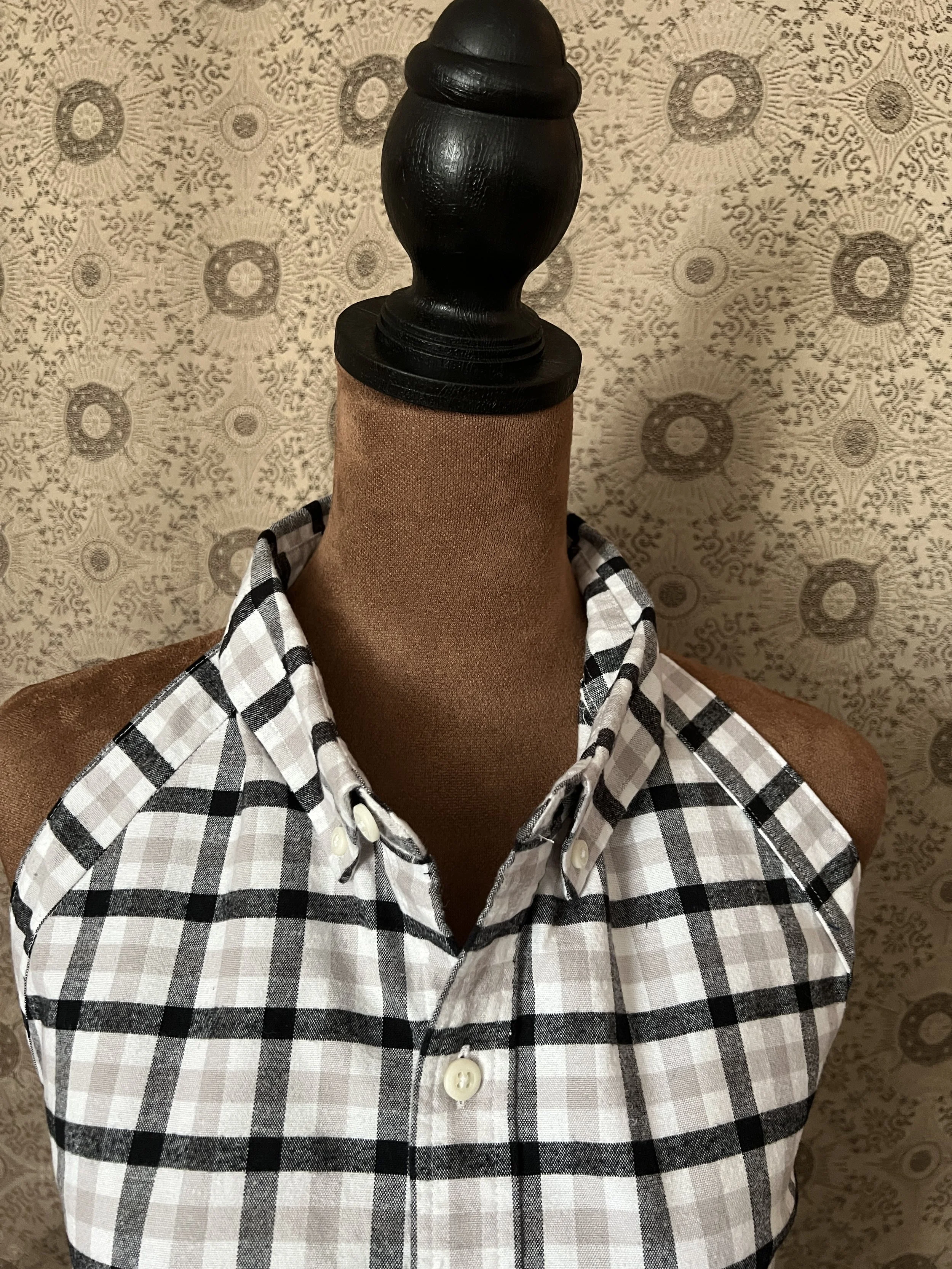 From the boardroom to the kitchen/craft room/garden.Each apron is made from a men’s XL dress shirt. Men's Shirt Aprons Men's Shirt Apron - Blue $28.00 Add To Cart Added! Men's Shirt Apron - White/Green Checkered $28.00 Add To Cart Added! Men's Shirt Apron - Black/Tan/White Plaid $28.00 Add To Cart Added!