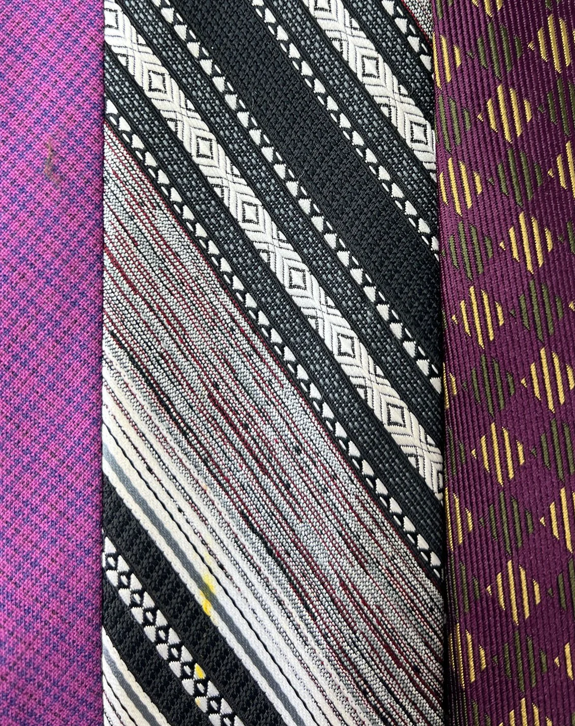 As these ties have been repurposed, there may be some imperfections in the material.