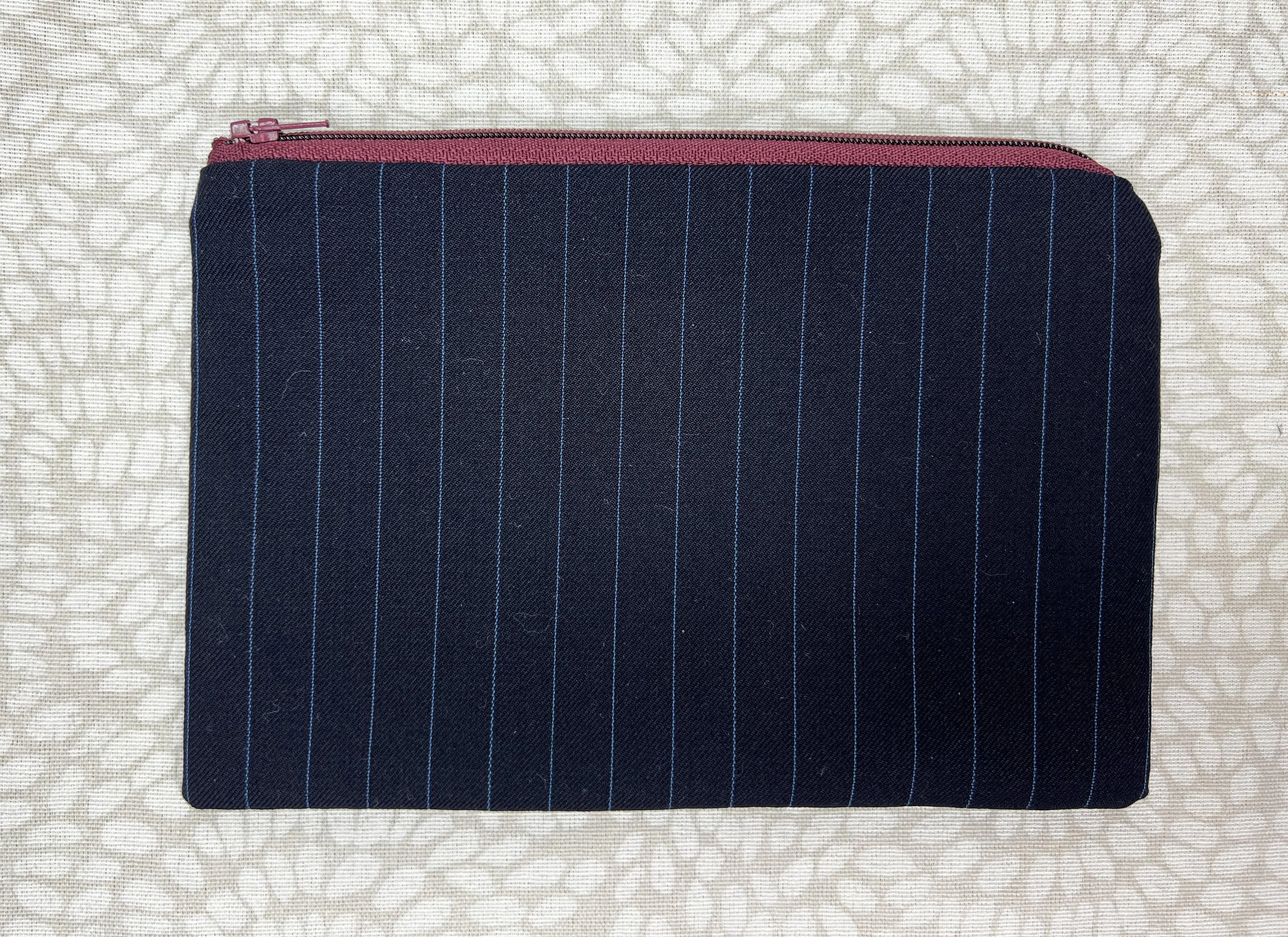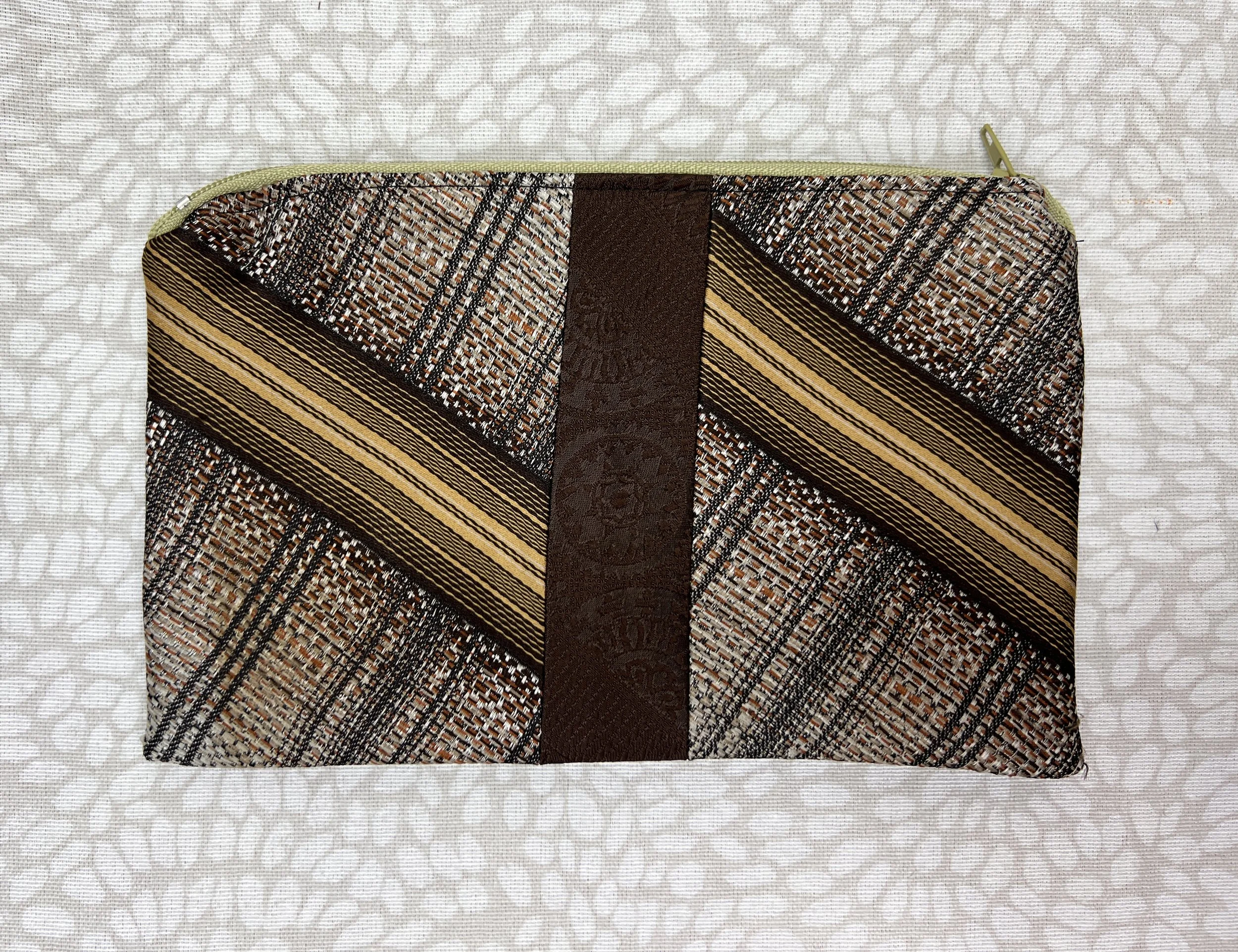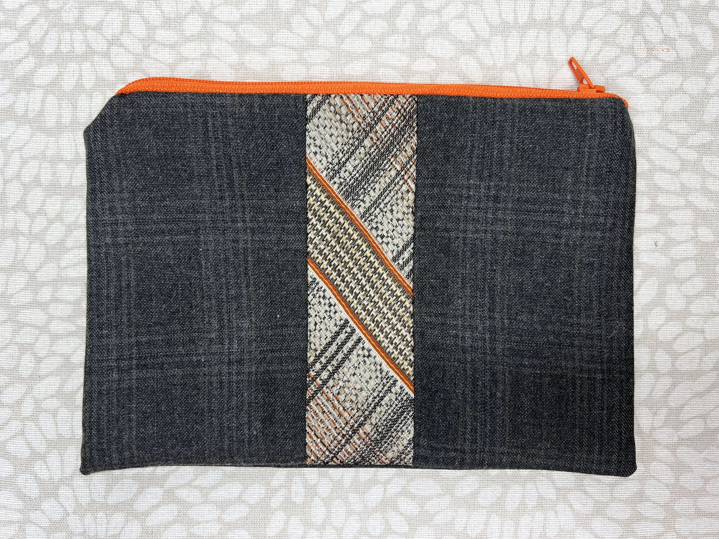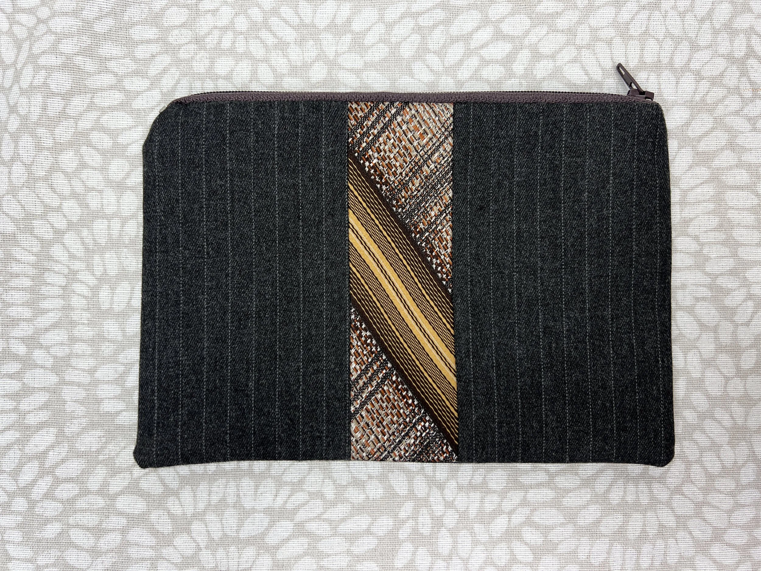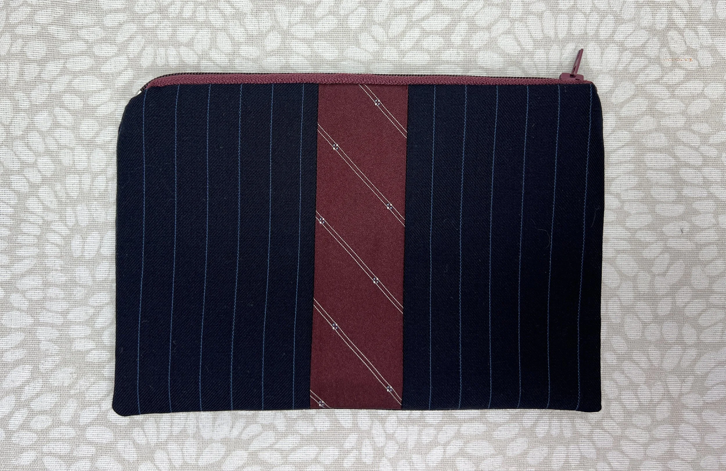 Business Causal Zipper Pouches are made from repurposed suit jackets, dress shirts, and neckties.